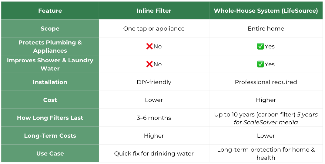 Considering upgrading your home's water filtration? Homeowners frequently feel confused when comparing inline water filtration vs whole house systems. Which one provides adequate protection, or do you need both? Here’s a clear breakdown to help you make an informed choice.