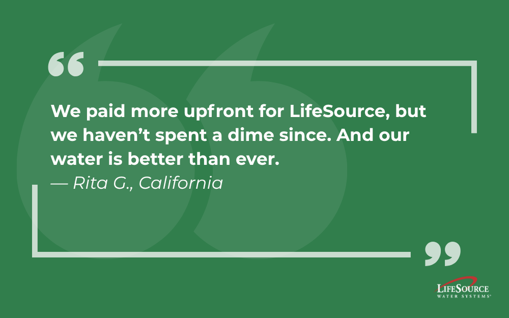 “We paid more upfront for LifeSource, but we haven’t spent a dime since. And our water is better than ever.â€